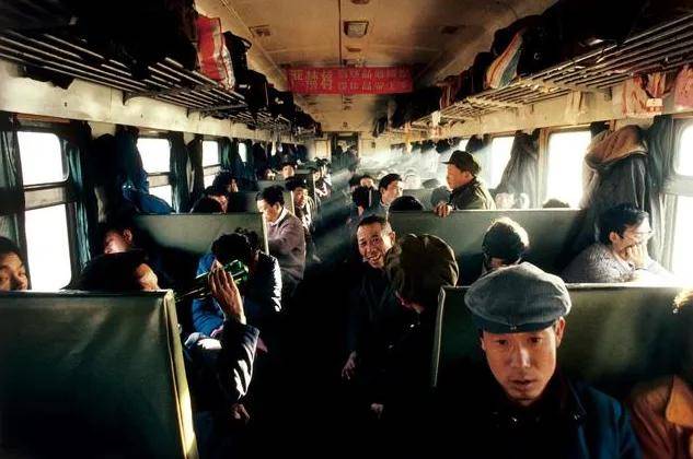 而在大同开往北京的绿皮火车上,那时的乘客们还没有智能手机作伴,整个车厢里充满了热闹的人情味,人们聚在一起聊天 、说笑,而一位乘坐硬卧的女孩则倚在门口对着镜头露出羞涩的笑容。