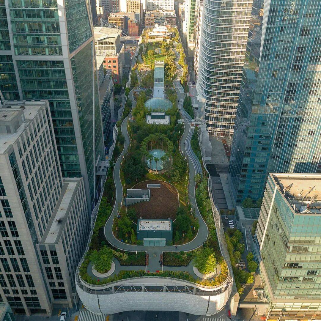 位于旧金山的新跨湾枢纽站(Transbay Terminal)设有一个2.18万平方米(5.4英亩)的屋顶公园,其中包括公共艺术装置。