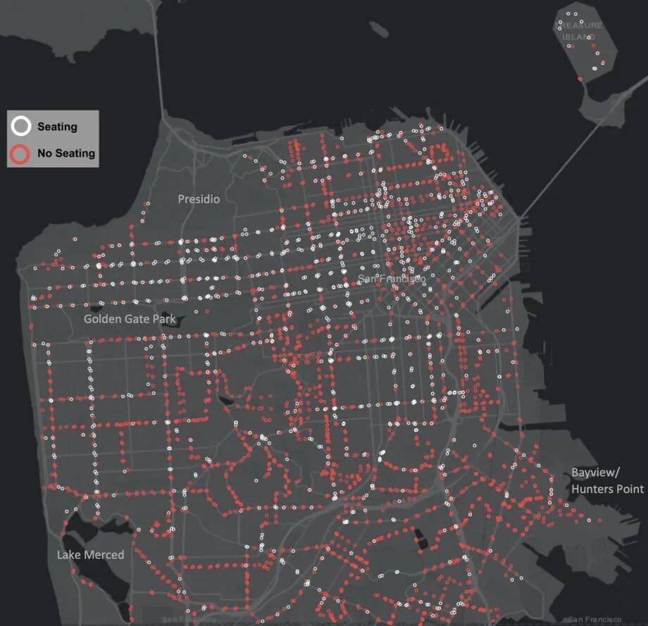 2020年夏天,Marcel Moran用了三个月的时间考察了旧金山的每一个街面城市公交车站——总共将近3000个。