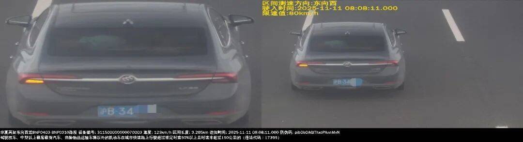 2025年11月11日8时8分,号牌为沪B34*** 的小型轿车在华夏高架东向西,实施了“驾驶校车、中型以上载客载货汽车、危险物品运输车辆以外的机动车在城市快速路上行驶超过规定时速百分之五十以上且时速未超过一百五十公里的”违法行为。