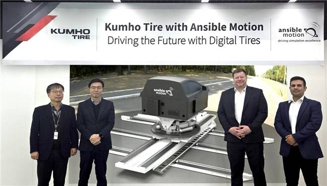 此次合作以“Kumho Tire with Ansible Motion: Driving the Future with Digital Tires”为口号展开。Ansible Motion作为全球领先的驾驶模拟器技术企业,拥有高精度还原真实道路行驶环境的核心能力,能够提供在虚拟环境中验证车辆动力学、行驶安全性及驾乘舒适性等关键指标的解决方案。