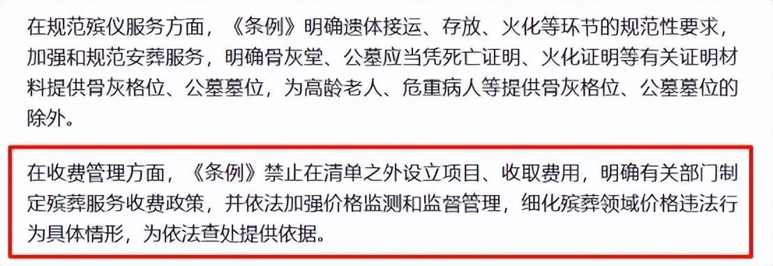 国家直接定好哪些是必须要的基础服务,比如接运遗体,火化这些,实行政府定价或者指导价,不在这个清单以内的收费项目,必须经过严格审核。