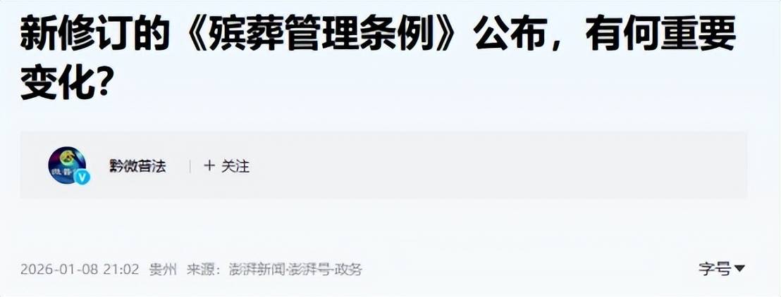 2026年3月30日是个大日子,新修订的《殡葬管理条例》在这一天正式施行。