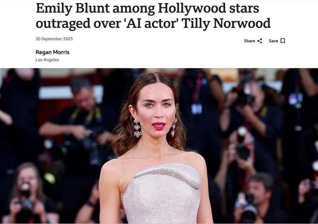 一线女演员艾米丽·布朗特(Emily Blunt,《奥本海默》《明日边缘》等主演)更是联合众多知名演员公开反对诺伍德,表示AI演员的存在本身就“非常可怕”。