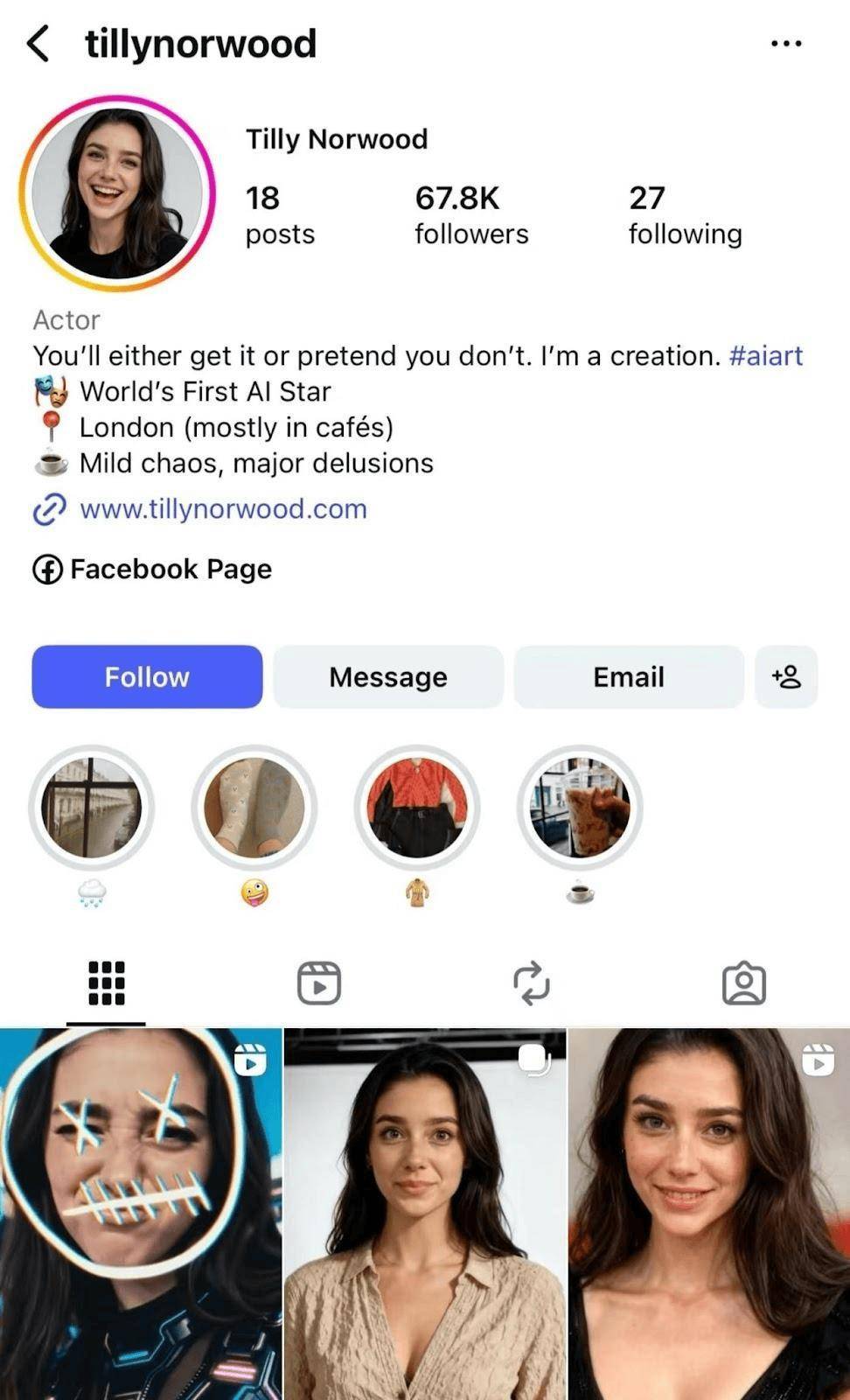 她是由一个叫做Particle6公司创造的,影视历史上第一位有形象、有作品、有经纪代理,并可被雇佣的 AI 女演员,蒂莉·诺伍德(Tily Norwood)。