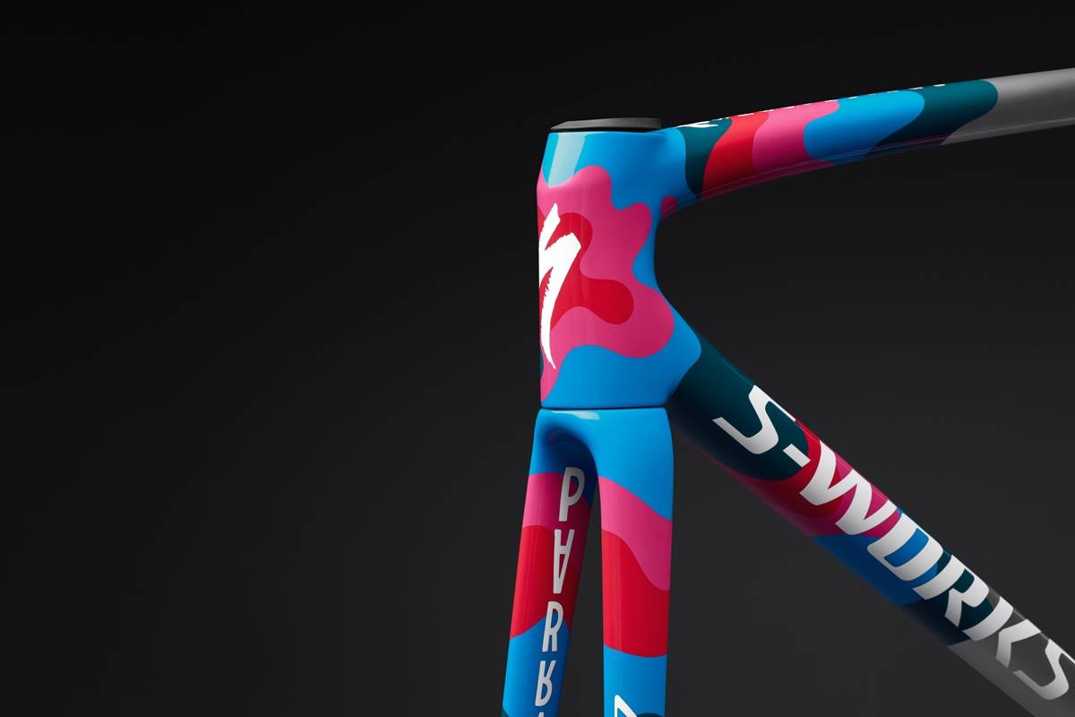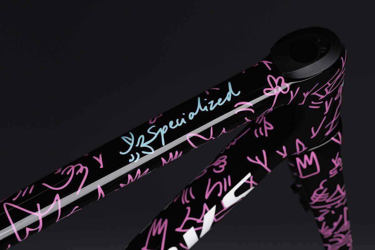 对Parra而言,骑行是自由与速度的交融——一场清空思绪、激发创意的重置。身为Tarmac车主的他将此次设计视为对心爱座驾的延伸。他的S-Works Tarmac LTD第一灵感来源于90年代缤纷多彩的骑行文化,并通过他标志性的曲线手绘风格重新演绎。
