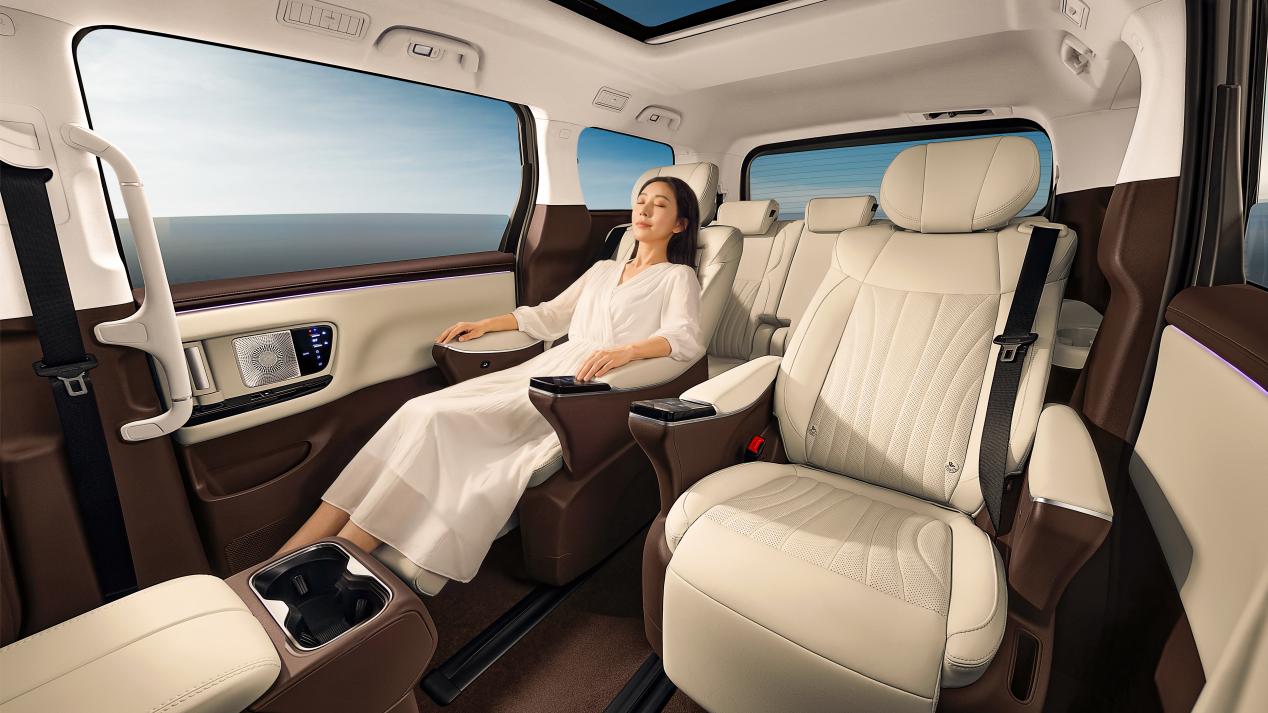 全车93处声学包+5块双层隔音玻璃、米其林静音轮胎等,怠速噪音低于图书馆标准,120km/h时速下后排交谈依然清晰,关上车门,就是另一个世界。17.3英寸高清吸顶屏,后排秒变家庭影院;智能冷暖冰箱(-6℃~50℃),夏天冰镇饮料,冬天保温热饮;400mm超低地台(比同级低50mm)、549mm两级长扶手,老人、孩子甚至穿裙装的女士都能从容上下车。