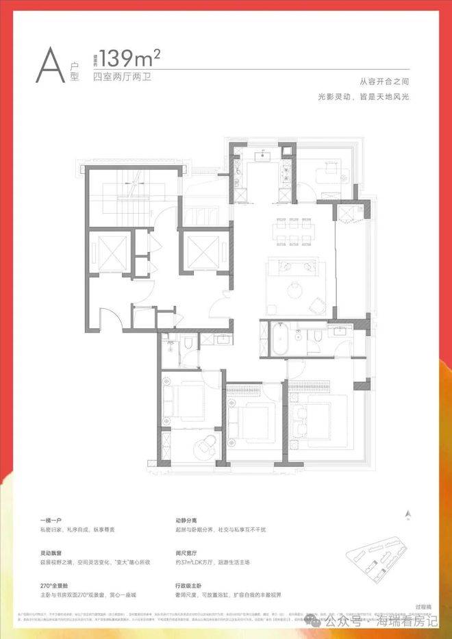 ✅保利誉·滨江营销中心热线(官方预约看房热线米。两个转角飘卧室。双阳台,其他房间全飘窗赠送。除了西边,另外三面几乎全是窗。看中庭景观,不到约140㎡的户型竟然能配浴缸!